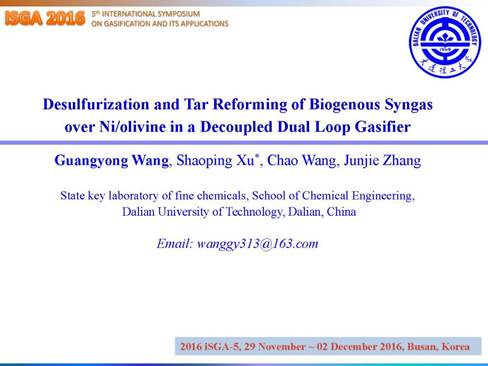 报告题目:Desulfurization and Tar Reforming of Biogenous Syngas over Ni/olivine in a Decoupled Dual Loop Gasifier