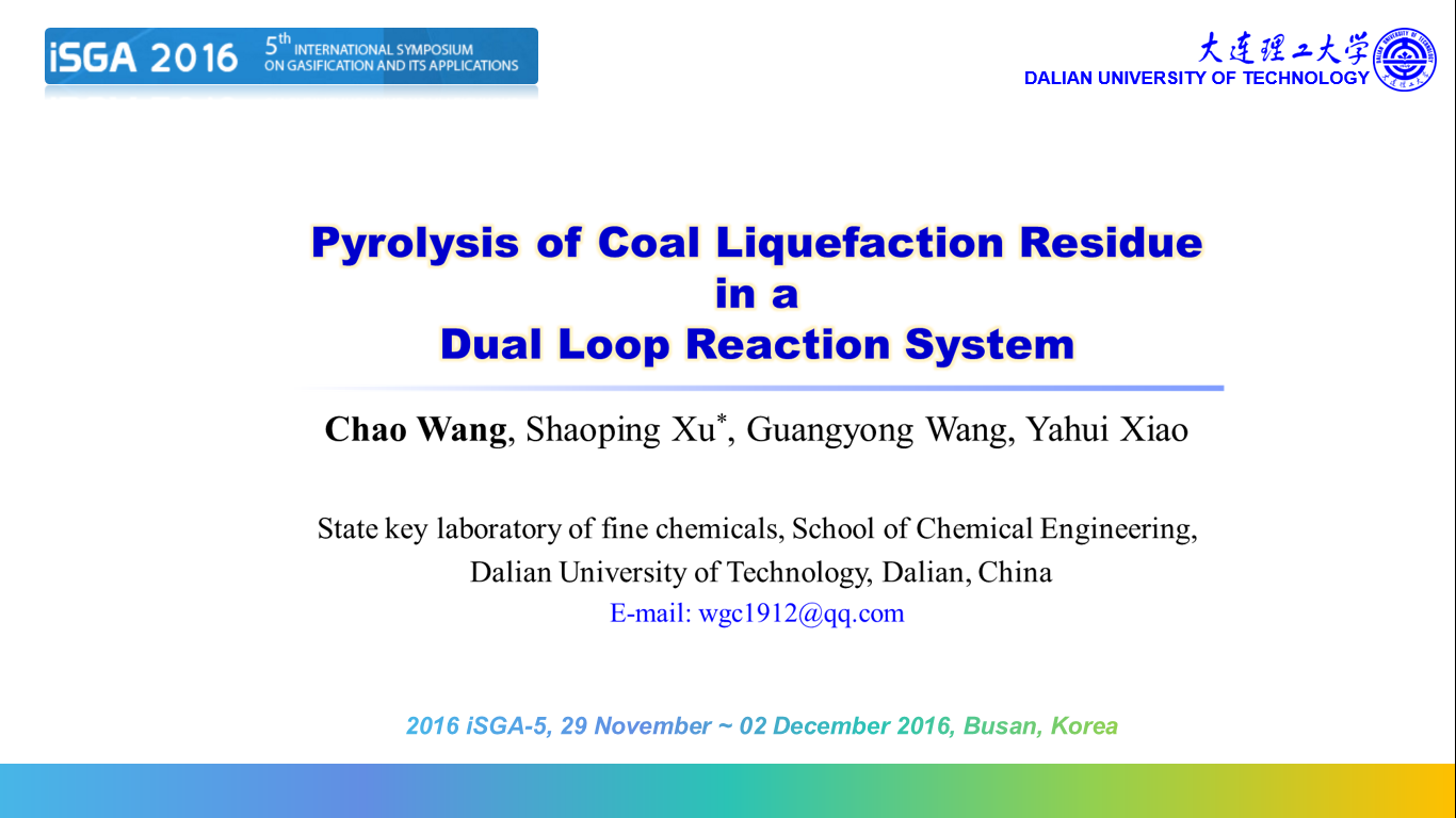 报告题目:Pyrolysis of Coal Liquefaction Residue in a Dual Loop Reaction System