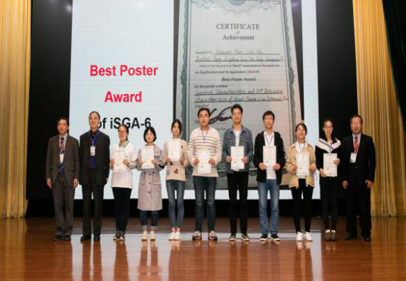 会议期间冯艳春博士、张静静硕士、王禹硕士分别展示了题为A Novel Blue-coke Production Process (iSGA-6)、Simultaneous Biogenous Tar Reforming and Syngas Methanation(iSGA-6)、吸水驱氮法表征炭分子筛(NETS-1)的学术墙报,得到与会者高度评价,其中张静静同学题为“Simultaneous Biogenous Tar Reforming and Syngas Methanation(iSGA-6)”的墙报被授予“Best Poster Award”。