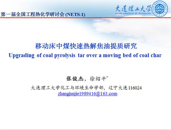 报告题目:Upgrading of coal pyrolysis tar over a moving bed of coal char