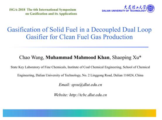 报告题目:Gasification of Solid Fuel in a Decoupled Dual Loop Gasifier for Clean Fuel Gas Production
